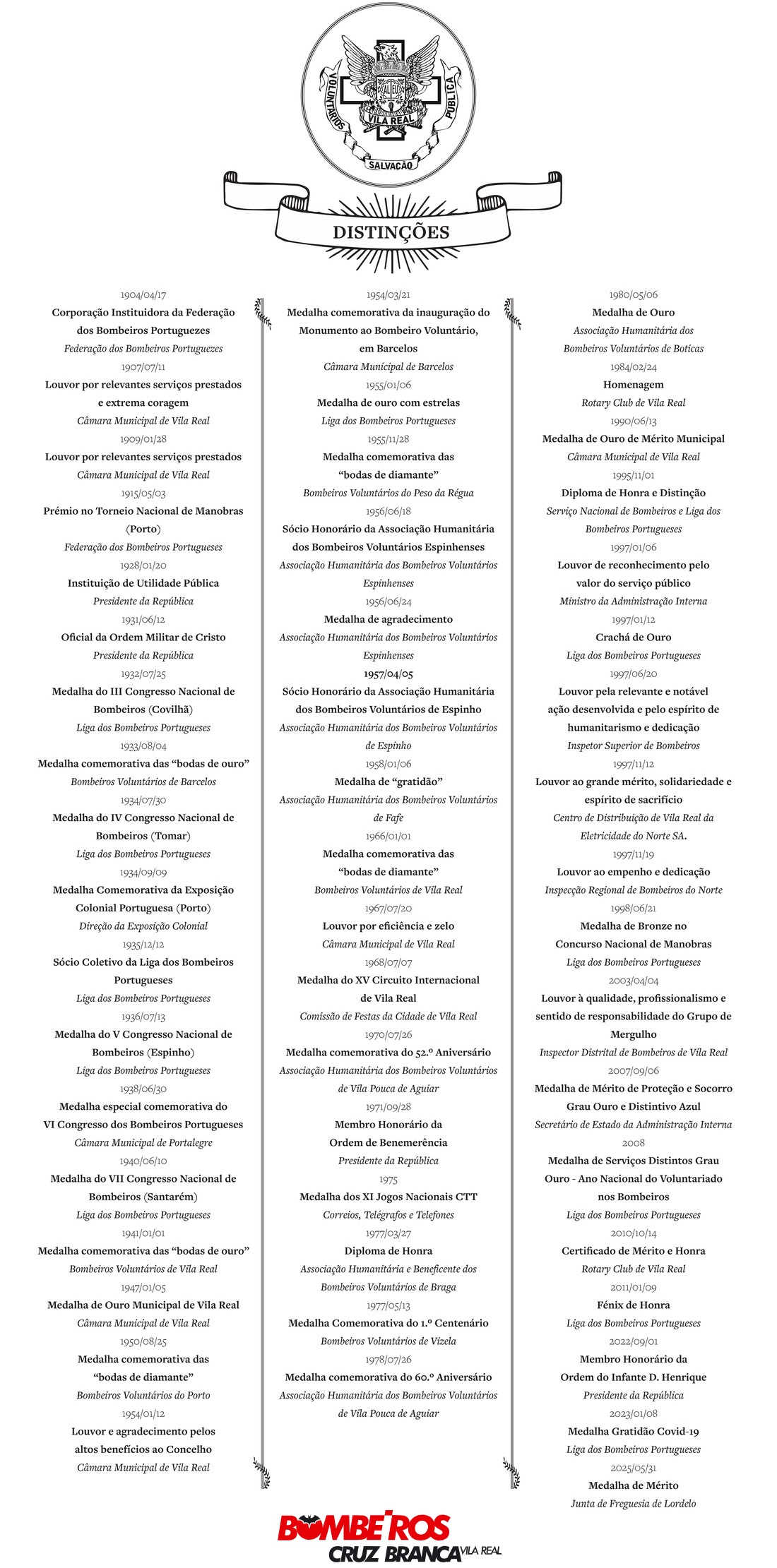 Estas condecorações são um reflexo do compromisso, da coragem e do profissionalismo de gerações de bombeiros que, desde 1864, colocaram sempre o bem-estar dos outros acima de si próprios. Cada medalha, cada louvor, cada diploma representa não só um momento de reconhecimento, mas também um marco na nossa história coletiva.